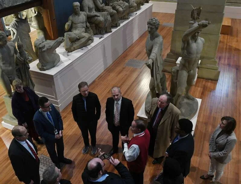 Governor Lamont made his first visit to Norwich Free Academy’s Slater Memorial Museum on Wednesday, February 1st, agreeing with Senator Cathy Osten’s (NFA ‘74) recommendation that it is one of the best museums in the state of Connecticut. (Featured here in Yahoo news. Photos courtesy of The Day newspaper.)
